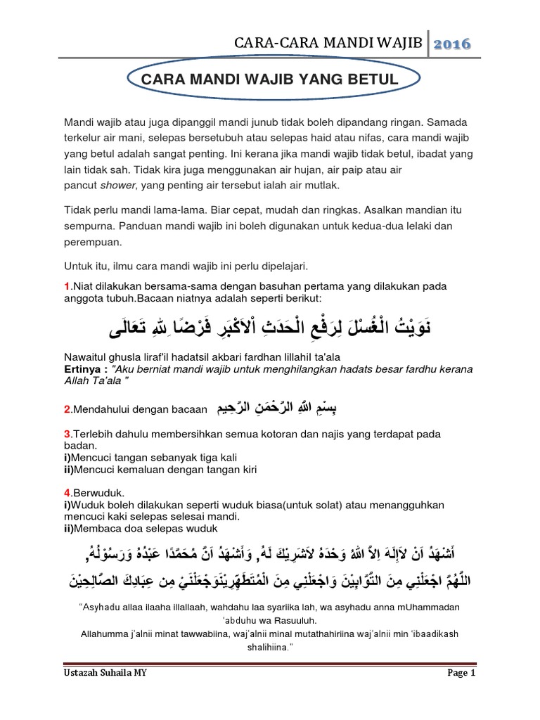 Niat Mandi Wajib Yang Mudah Dan Betul Kisah Viral Dunia